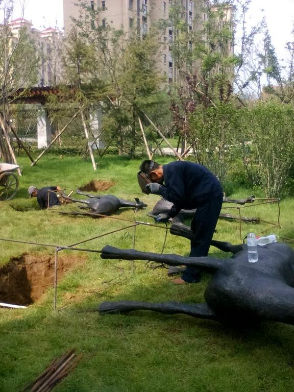 烟台中青产业城铸铜群鹿安装现场
