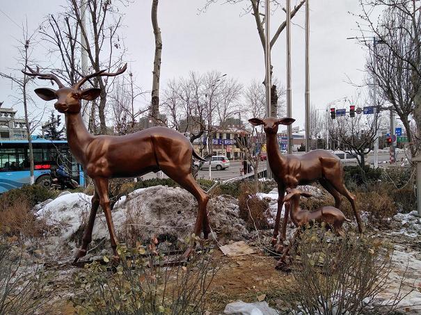 烟台雕塑--德信恒隆国际酒店《鹿》 材质:玻璃钢  安装地点:酒店入口小花园
