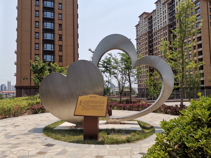 蓬莱居佳领海银婚园雕塑景观  304不锈钢材质,高3.9米。2019年11月制作安装。