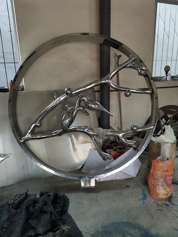 烟台万光城建 “中华城”  项目景观 不锈钢镜面雕塑 《花月夜》 直径2米 材质304不锈钢 昌林雕塑2019年10月制作安装
