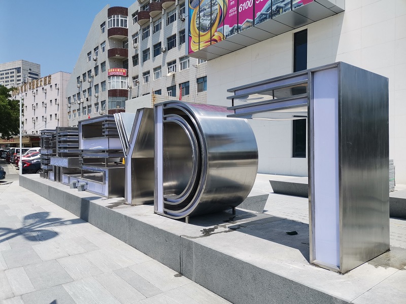 烟台亚东柒 号文创园 大型316不锈钢(3mm厚)字体发光标志景观  高1.8米  高难度加工烟台唯      一制作厂家  昌林雕塑景观
