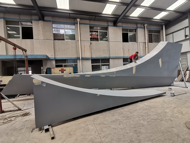 烟台万光山海城 万光前城精神堡垒 不锈钢 高12米 昌林雕塑2021年制作安装