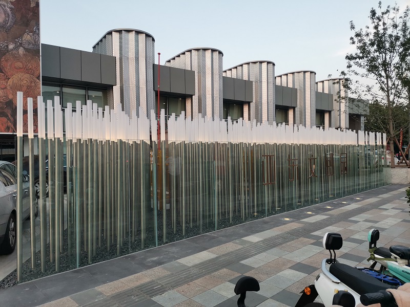 烟台亚东柒号文创园 316不锈钢发光灯柱景观 高2.3米 昌林雕塑2021年制作安装