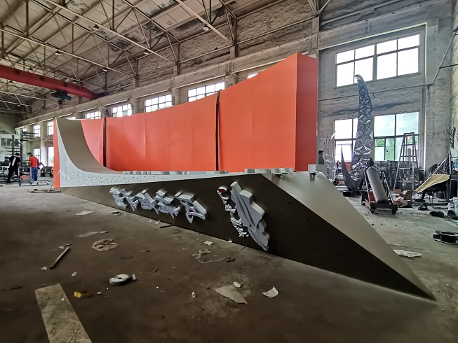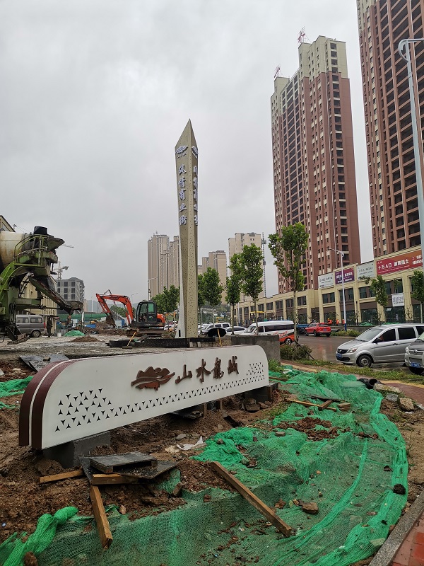 烟台山水龙城 商业街  不锈钢精神堡垒LOGO  高10米  昌林雕塑2022年制作安装