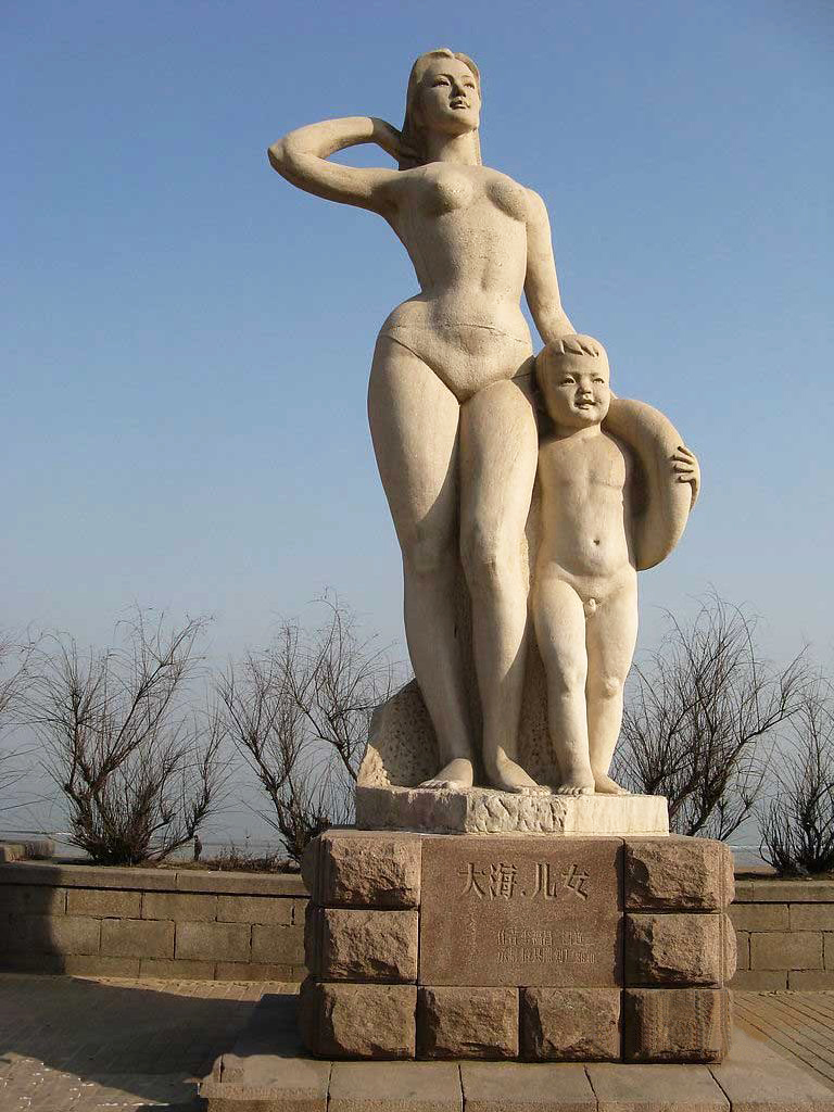烟台 【大海儿女】位于烟台市第一海水浴场,雕塑高4.3米,材质(大理石)